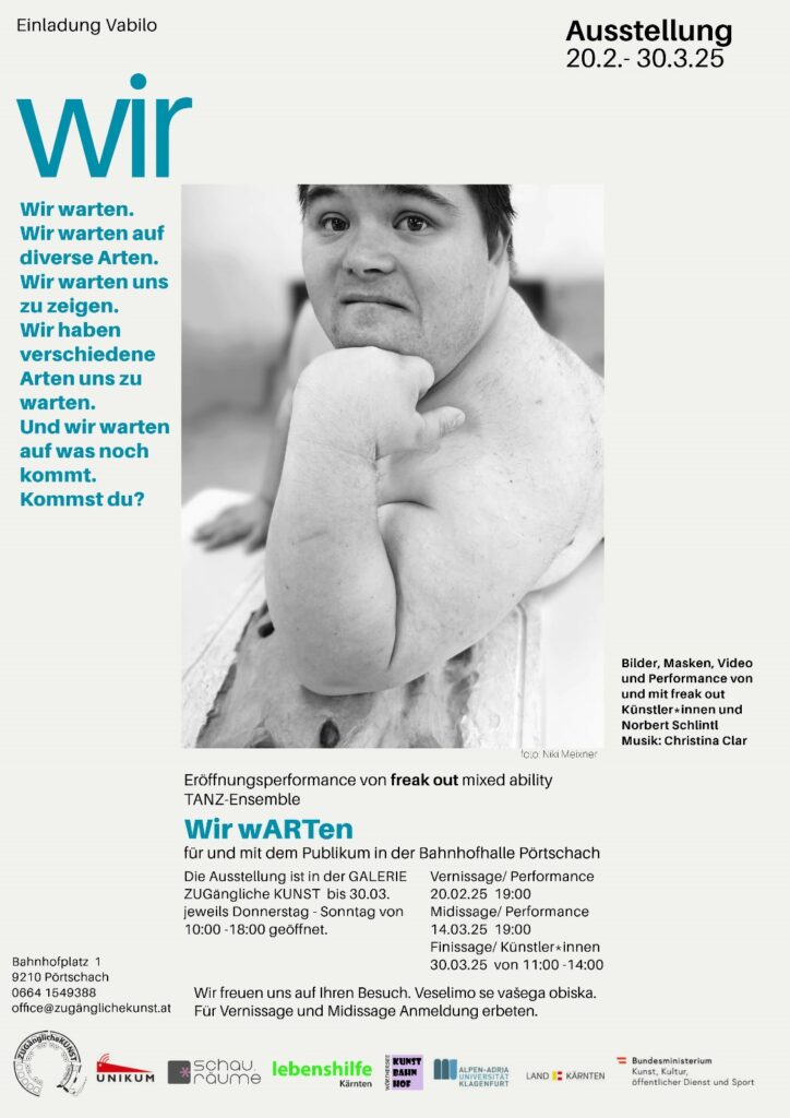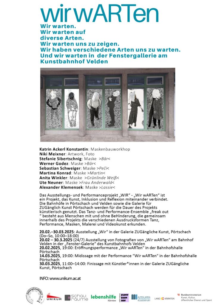 The mixed-ability dance group from Carinthia, freak out, has created a new performance called ‘we wait’, for which I made the music. We will play twice in the hall of the station in Pörtschach. There is an exhibition on the process of the creation in the gallery of the railway building, ‘Galerie ZUGängliche Kunst’. hope to see you there!